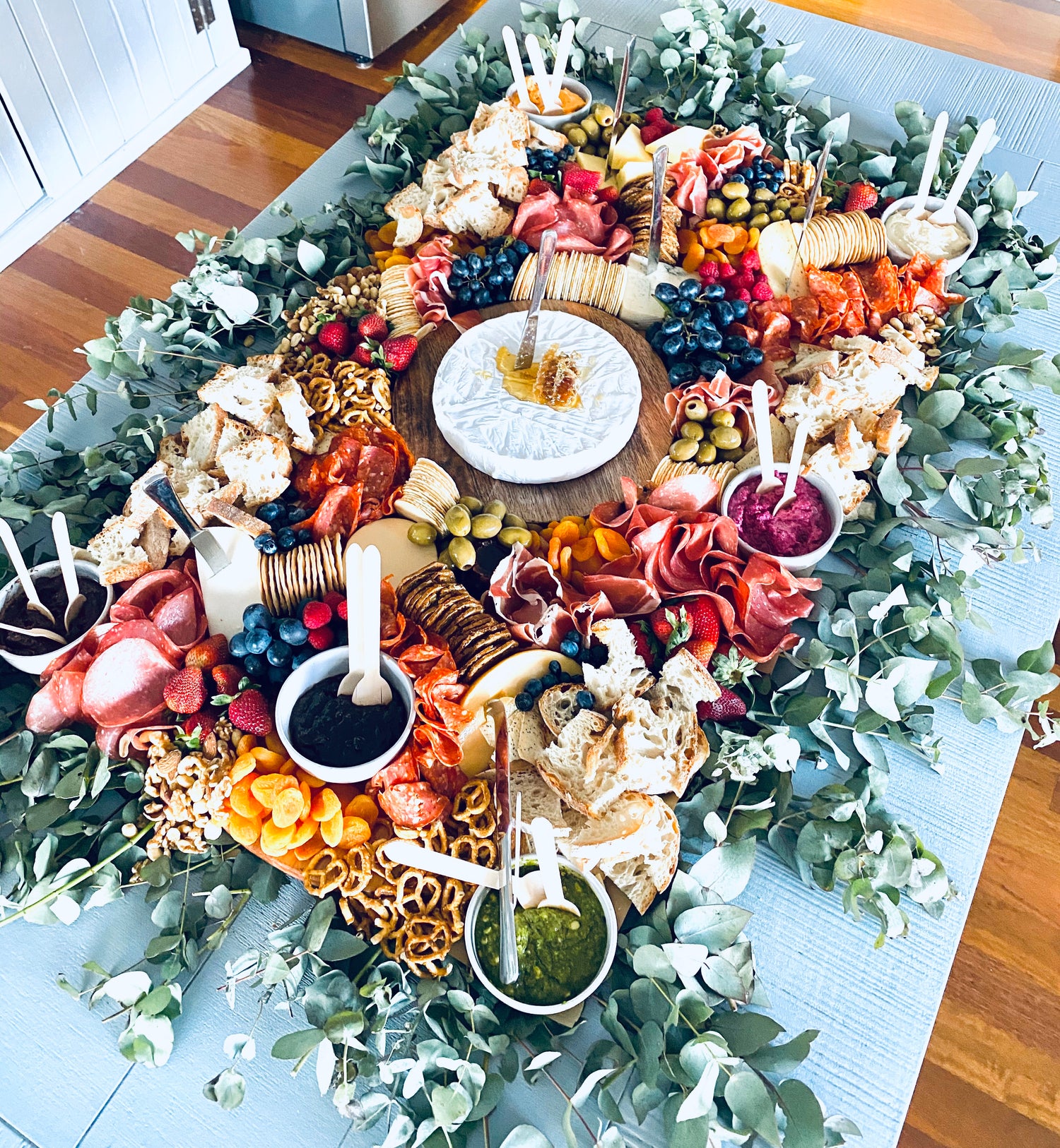 Our signature grazing tables are jam-packed with an array of cheese, charcuterie, seasonal fruit, olives, dips, antipasto bites, fresh bread, crackers & platter accompaniments.